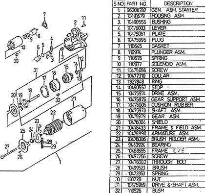 96208782 Starter PG150 / 12V / CW Add to cart Need to service and repair your PG150 / Daewoo Cielo starter motor, Click here to see of original Delco Remy Service parts available.