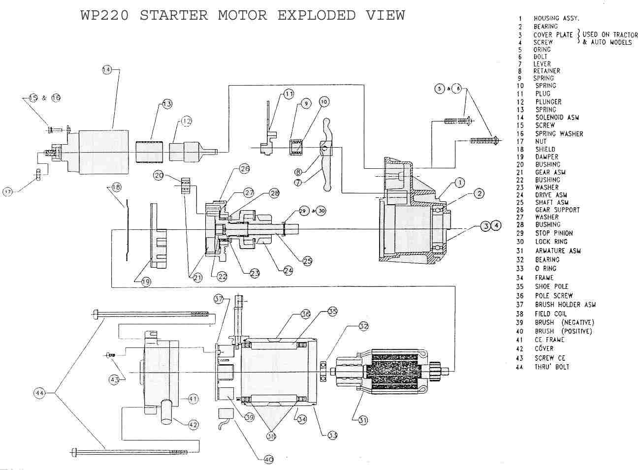 The WP220 armature is dynamically balanced and rides in sealed ball bearings & bush. Fiber glass banding and varnish impregnation are used for added armature strength. The moulded bar commutator received electrical power through radially positioned one piece brushes. Constant pressure brush spring are used for even brush wear and long life.